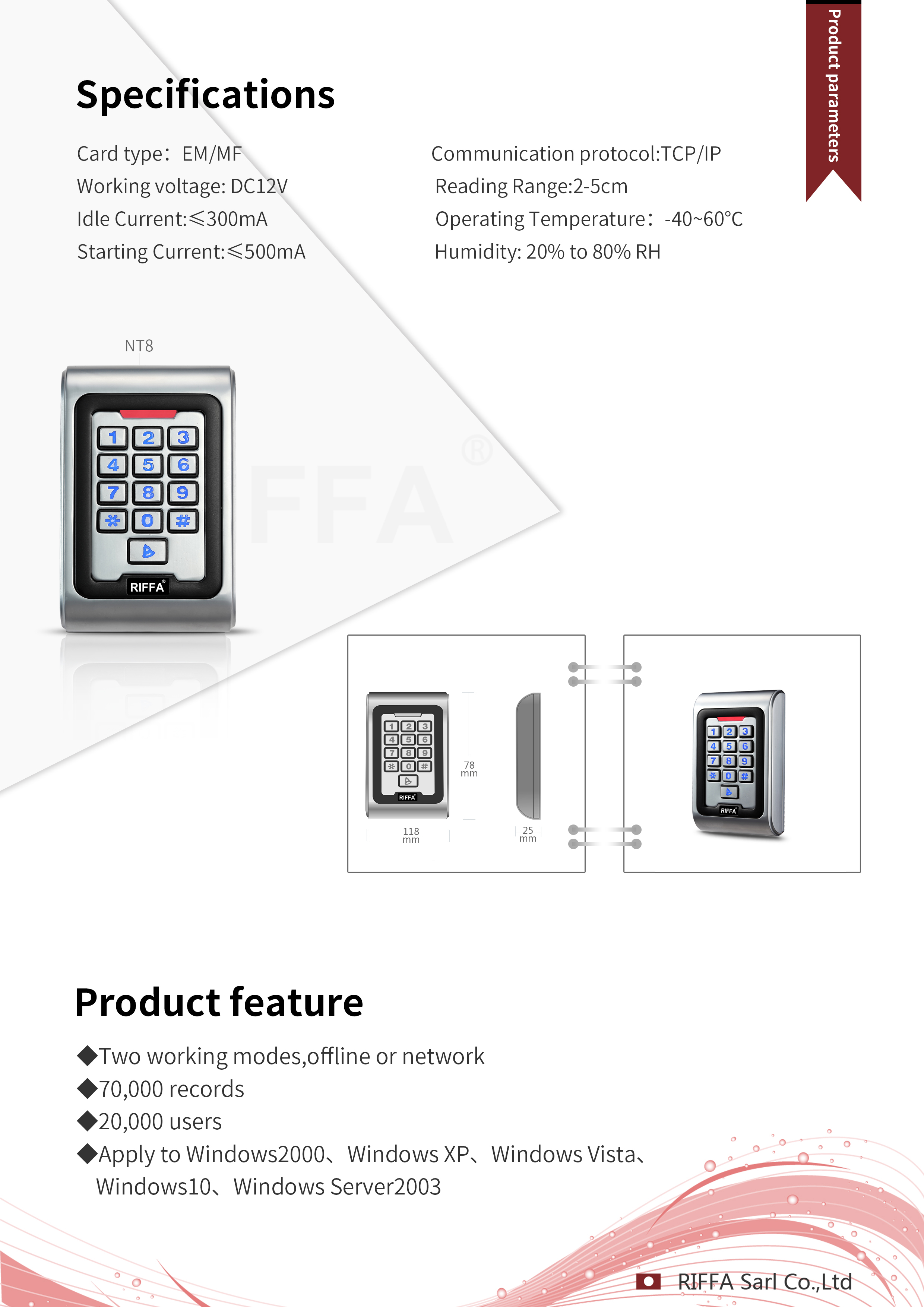 Température de fonctionnement : -40 ~ 60°C