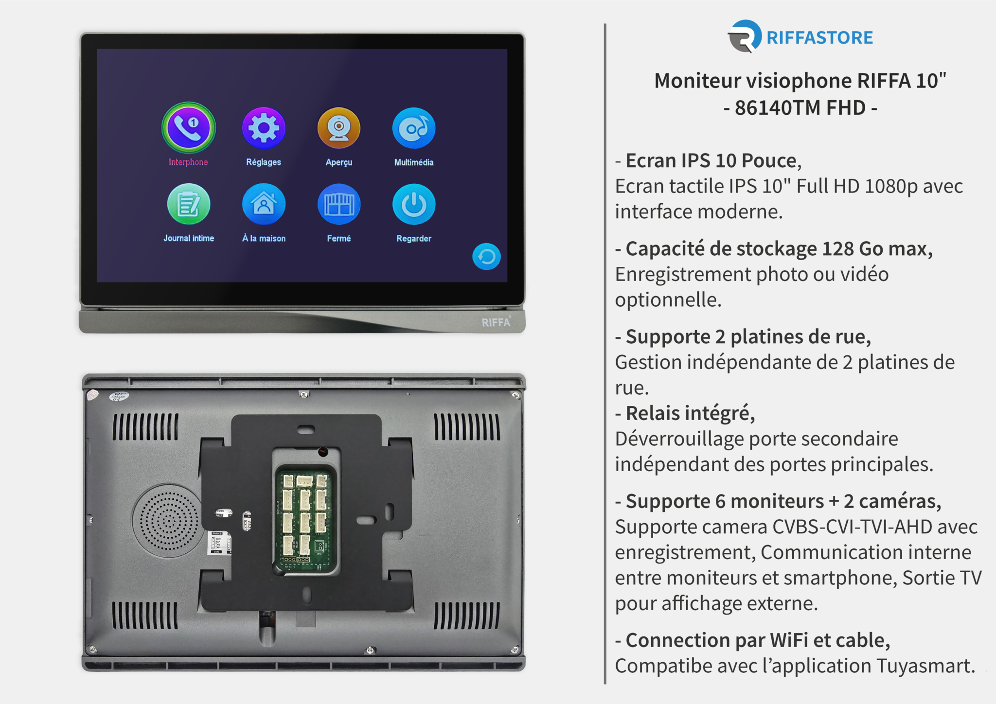 ⦁ Enregistrement photo ou vidéo (carte SD jusqu’à 128 Go – non incluse).⦁ Gestion indépendante de 2 platines de rue :