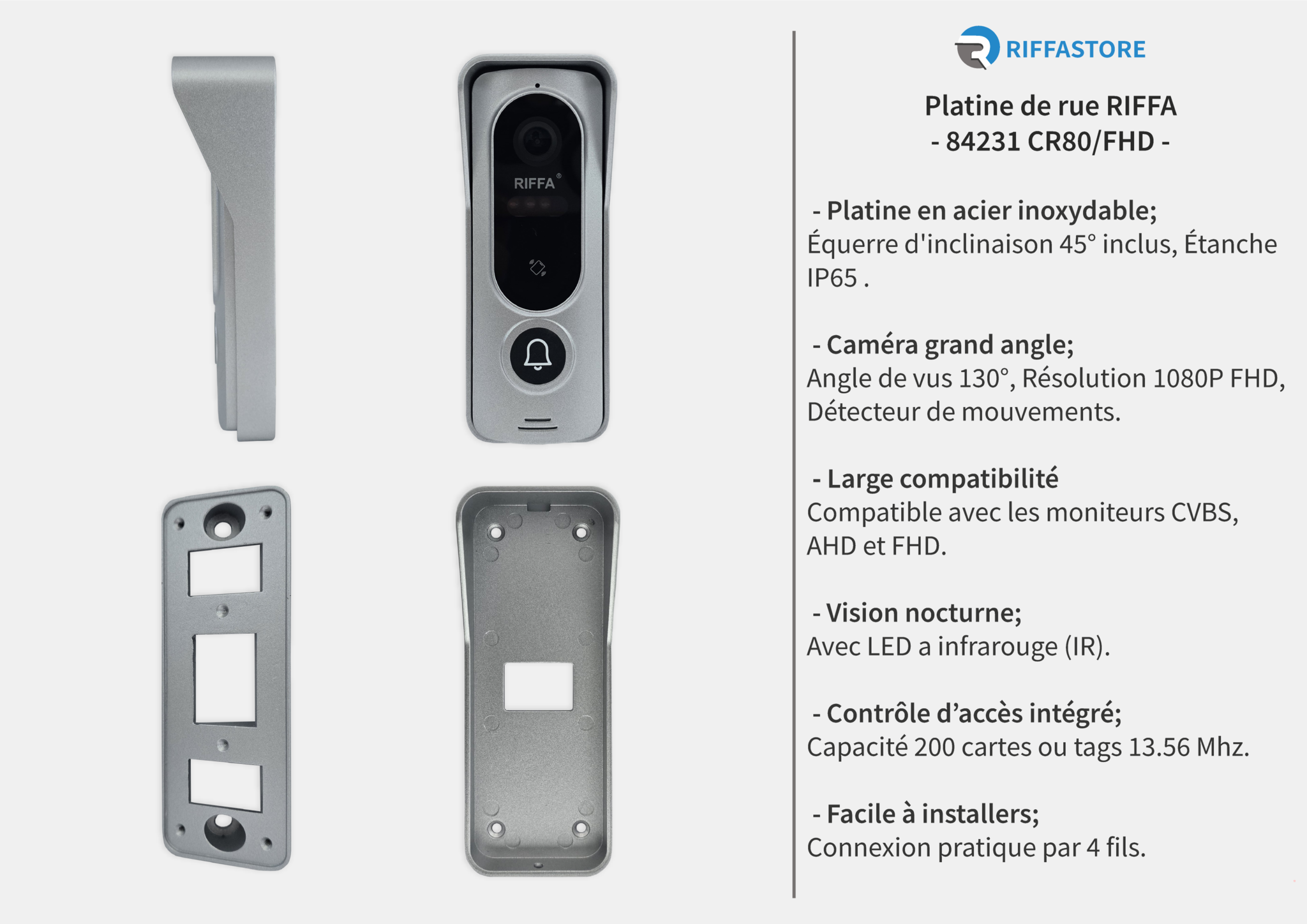 - Caméra grand angle; Angle de vus 130°, Résolution 1080P FHD, Détecteur de mouvements.